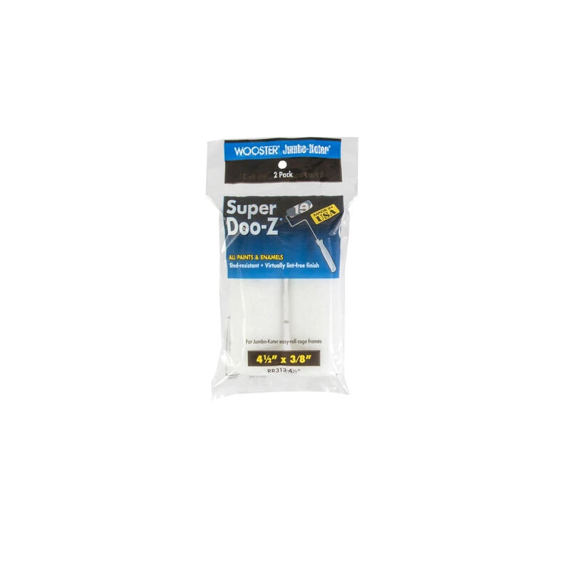 Shed-resistant white fabric for a virtually lint-free finish with all paints, enamels, varnishes (satin, velvet, semigloss & gloss) 2 pack. For use with Wooster Jumbo-Koter system.