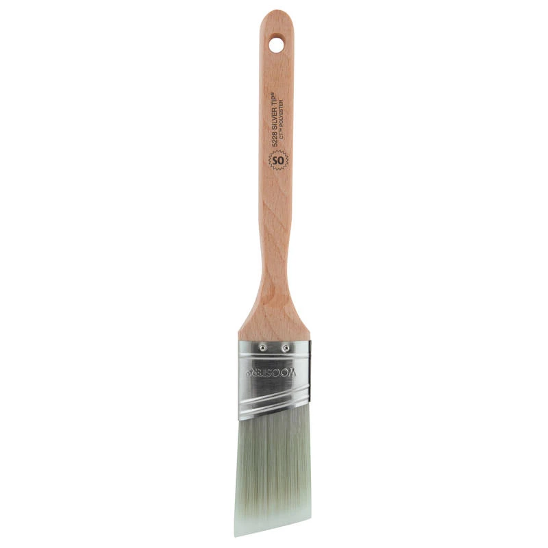 The Wooster Silver Tip paintbrush has chemically tipped CT polyester filaments for excellent leveling and smoothing and almost no brush marks. Its provides a feather stroke with all paints, enamels, varnishes and polyurethanes. The paint brush is made with a professional-quality, rust-resistant, very durable stainless steel ferrule and a hardwood handle that provides good comfort and balance.