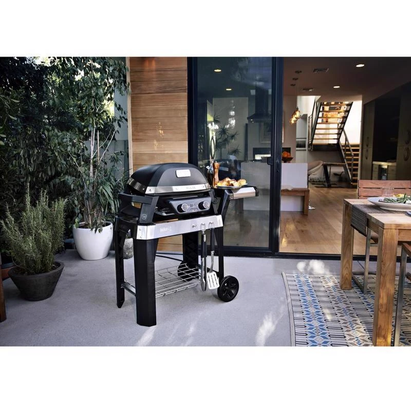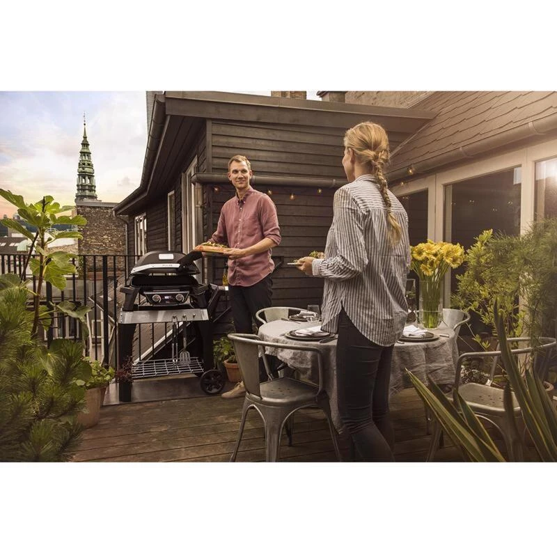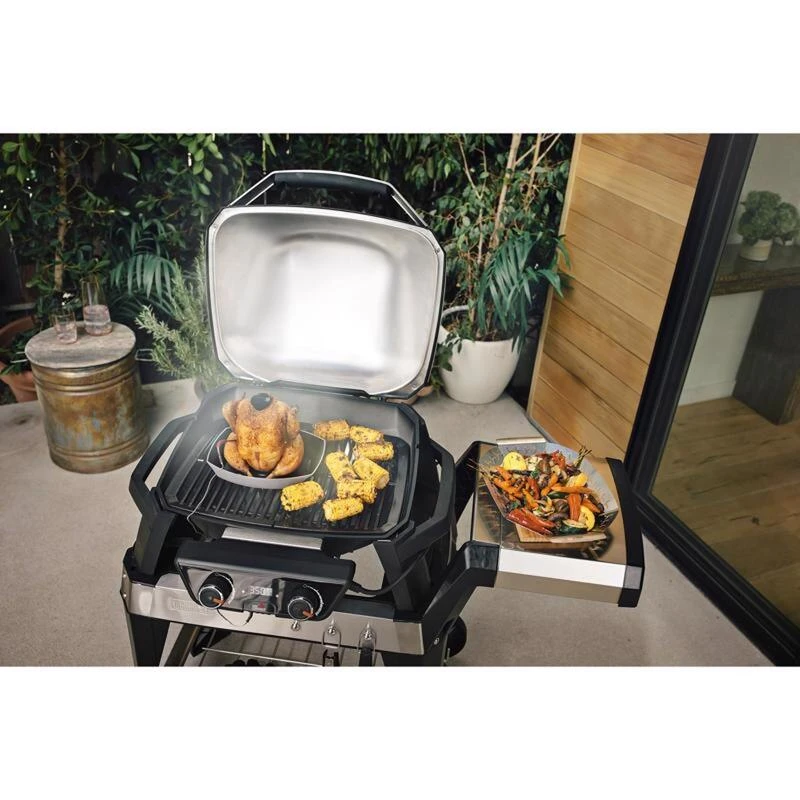 Place the Pulse grill onto this heavy-duty cart for optimal grilling height, a solid base and easy mobility. The cart is also ideal for workspace prep with the integrated tool hooks and side table for placing serving trays.