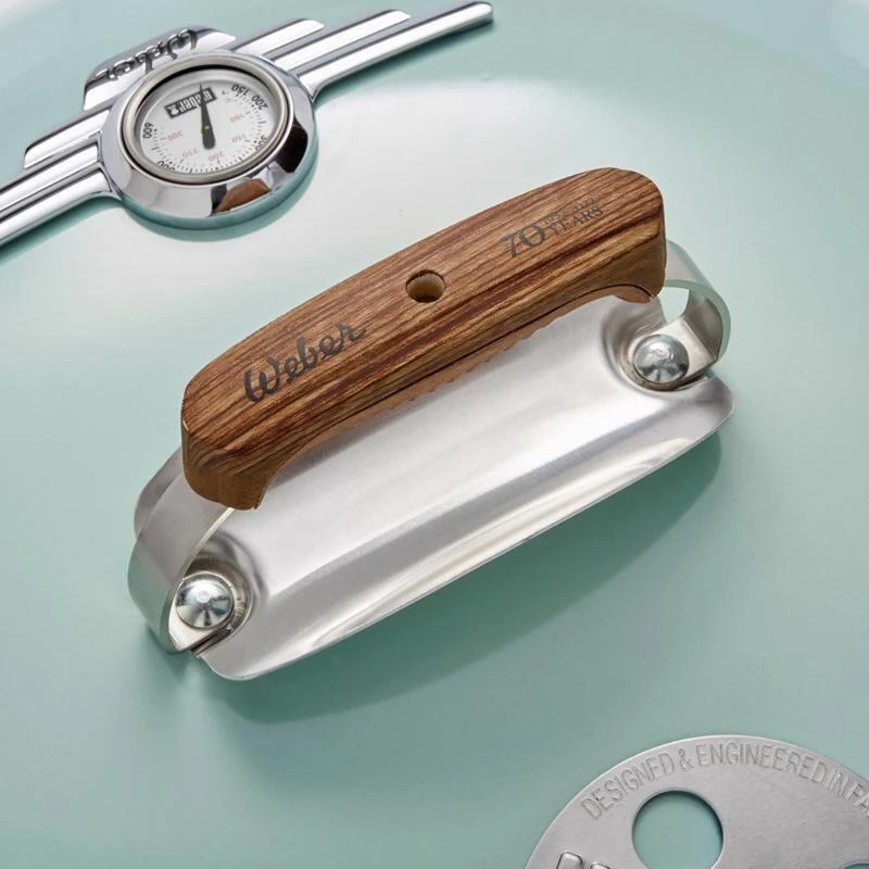 Celebrating 70 years of grilling with our 70th Anniversary Edition Kettles. The limited-edition 70th Anniversary Kettle is a high-quality Weber kettle you’ve come to expect combined with nostalgic and modern features. Nods to different eras of Weber’s history can be found throughout its thoughtfully detailed exterior. Other retro features include a solid bottom, ornament themed lid thermometer. All of it comes together to create a grilling experience worthy of celebration.