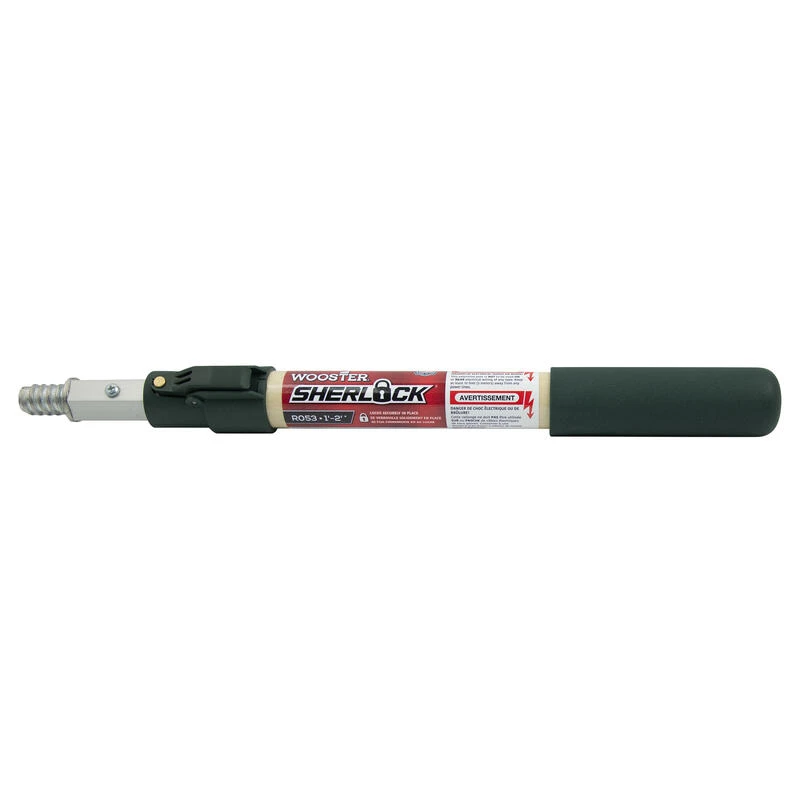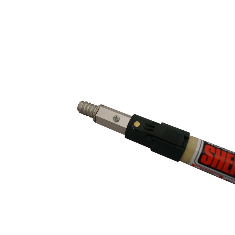 Adjust the length of the 1 – 2 ft pole with just the touch of the thumb. The green quick-release position lock is made of durable, fiberglass-reinforced nylon with a heavy-duty brass locking pin. It has a polyester fabric surface treatment for durability. The strong hexagonal inner pole, made of anodized aluminum, prevents twisting and locks in 6 in. increments. The rugged, zinc die cast threaded tip holds the roller frame securely.